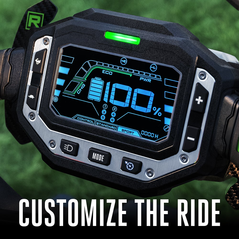 The EGO Power+ 42″ Z6 Zero Turn Mower is a revolutionary battery-powered mower that delivers peak performance equivalent to a 22HP gas engine. Featuring four independent high-efficiency brushless motors, it provides ultimate control with e-STEER™ technology and a large LCD interface with three driving modes: Control, Standard, and Sport.
